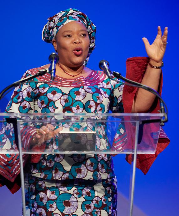 L'activiste Leymah Gbowee s'adresse à l'assemblée. Elle a remporté le Prix Nobel de la paix pour son rôle dans la gestion d'un mouvement de femmes pour la paix qui a mis fin à la deuxième guerre civile au Liberia en 2003. Photo de Paul Jeffrey, pour les Femmes Méthodistes Unies.